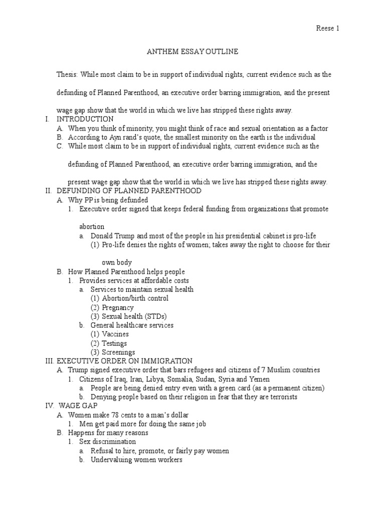 That anthem essay examples denying his needs. This lead to the destruction of all progress and all forward movement. Like the people revolting against the government. according to theme of the book Anthem, in history there were many uprising of the people against the government.